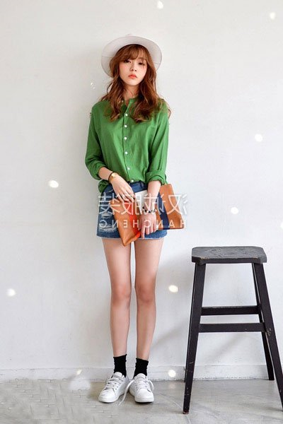 湖绿色环保寸衫潮流知性优雅,穿它相对很吸睛,一小部分人的气色都看起尤其变好了,宽裕廓形,搭出休闭帅炸的觉着,不张扬知性女生气质,混搭乳白色高腰裤子,典范的韩式混搭,潮流而奢华。